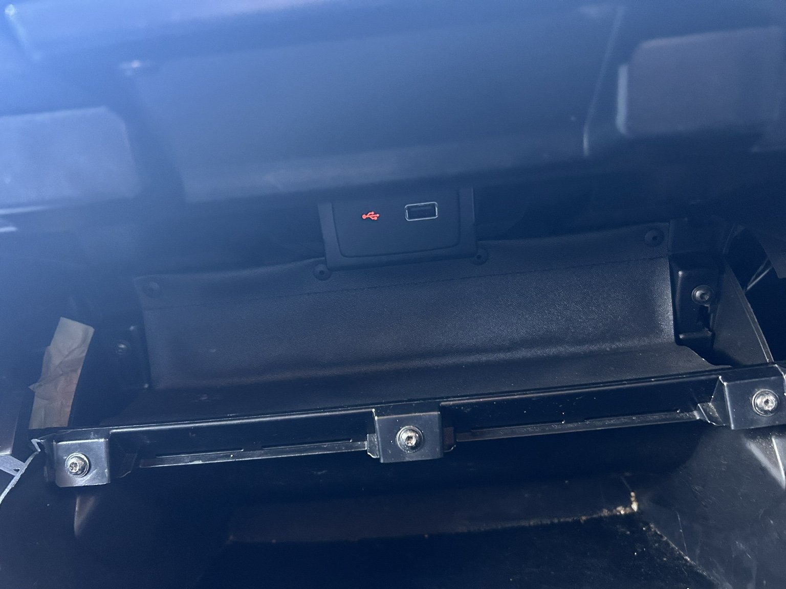 - Open storage on passenger side lower dash